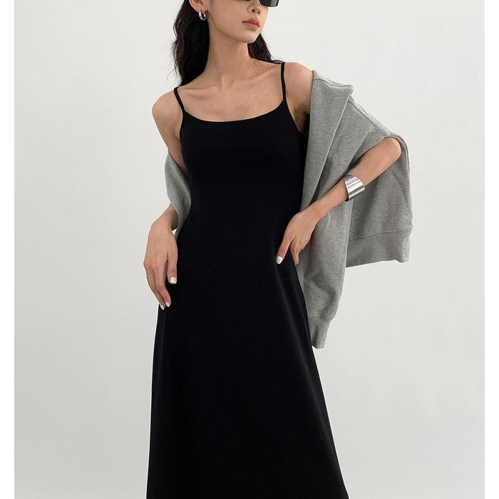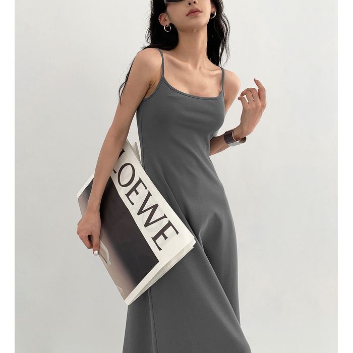 ミニマルなデザインが魅力のキャミソールワンピース。